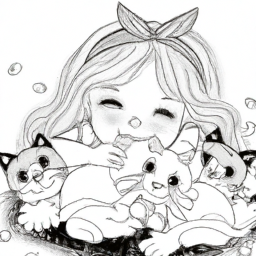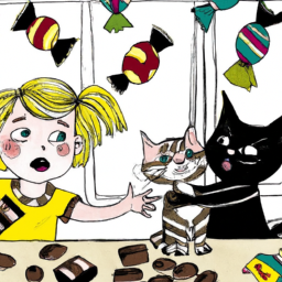 C'era una volta una famiglia di gatti bambini biondi che viveva in una casa piena di cioccolata. Erano felici e contenti di condividere le loro giornate con una varietà di dolci. Un giorno, uno dei gatti bambini, si chiamava Fluffy, decise di esplorare la casa alla ricerca di qualcosa di nuovo da provare. Mentre camminava, Fluffy sentì una voce dolce e melodiosa provenire da una stanza. Entrò nella stanza e vide una grande fontana di cioccolato che fluiva dal soffitto. Fluffy era così entusiasta che cominciò a nuotare e giocare nella fontana. Mentre Fluffy nuotava, sentì di nuovo la voce melodiosa. Era una fata che stava guardando la fontana. La fata disse a Fluffy che la fontana era magica e che se avesse bevuto un po' di cioccolata, sarebbe diventato ancora più intelligente e avrebbe avuto più energia. Fluffy non esitò e bevve un po' di cioccolata. Immediatamente, si sentì più intelligente e pieno di energia. La fata sorrise e disse a Fluffy che lui e i suoi amici gatti bambini biondi avrebbero potuto godere delle proprietà della fontana per sempre. Da quel giorno, tutti i gatti bambini biondi erano più intelligenti e più energici perché bevevano regolarmente un po' di cioccolata dalla fontana magica. E vissero felici e contenti per sempre.