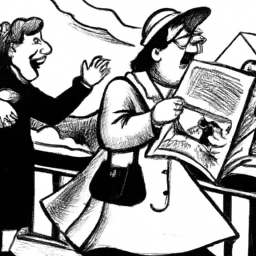 Giornalaio abusivo, vecchia signora ancora piacente, chiassosa scolaresca in gita. La vecchia signora era molto piacente e scolaresca. Aveva una scolaresca molto chiassosa, che la divertiva enormemente. Le sue gite erano sempre molto interessanti, e tutti i bambini la adoravano. Giornalaio era un bambino molto scolaretto, e molto ammirato da tutti. La vecchia signora era una gran amica di Giornalaio, e gli faceva sempre molte domande. Un giorno, durante una delle sue gite, Giornalaio raccontò a la vecchia signora una bellissima favola. La vecchia signora la ascoltò attentamente, e poi sorrise.