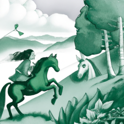 C'era una volta una donna avventurosa che viveva nelle montagne verdi e ventose. Un giorno, mentre stava esplorando la regione, sentì un nitrito e vide un cavallo selvaggio che correva in un bosco incantato. La donna decise di seguire il cavallo, sperando di scoprire cosa si nascondeva nel bosco. Quando si avvicinò, vide un bambino seduto su una roccia. La donna si avvicinò e parlò con il bambino che le disse di essere lì da molto tempo, in cerca di un modo per tornare a casa. La donna si offrì di aiutarlo e insieme decisero di cercare il cavallo selvaggio. Dopo ore di ricerca, si imbatterono nel cavallo che stava pascolando in un prato. La donna si avvicinò lentamente e gli parlò dolcemente. Il cavallo, sentendo la sua voce, si avvicinò e la donna riuscì a montarlo. Mentre cavalcavano attraverso il bosco, la donna e il bambino scoprirono che il cavallo era un magico destriero che li avrebbe portati a casa. Il cavallo li condusse attraverso il bosco incantato, su un sentiero di stelle che brillavano nel buio. Alla fine raggiunsero la loro destinazione e il bambino poté ritornare a casa. La donna e il bambino ringraziarono il cavallo per averli aiutati e si salutarono con un abbraccio. Poi la donna salì in groppa al cavallo e insieme cavalcarono verso le montagne verdi e ventose, scomparendo nel bosco incantato.