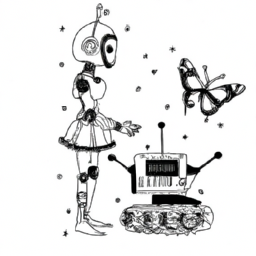 Un robot andò a cercare una farfalla. La trovò in un bosco e la chiamò. La farfalla disse: «Non ti preoccupare, robot, io sono sempre felice.» Poi la farfalla si mise a danzare e la musica la trasportò in un mondo lontano.