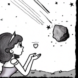 Una principessa si innamorò di un meteorite che volava in cielo. La principessa lo chiamò amore e lo amò con tutta se stessa. Il meteorite non sapeva nulla di lei e continuava a volare in cielo. La principessa continuava a amarlo, anche se non sapeva nulla di lui. Un giorno, il meteorite cadde a terra e la principessa lo trovò. La principessa gli disse quanto era innamorata di lui e il meteorite rispose: "Ti amo anch'io, principessa". La principessa si innamorò ancora di più di lui e il meteorite continuò a volare in cielo.