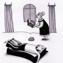 Un giorno, La Signora Carla era sola in casa. Non aveva nessuno con cui parlare. Alla fine, decise di andare a letto. Mentre si preparava per andare a dormire, notò una vecchia cassaforte nella stanza. La Signora Carla si chiese cosa potesse essere dentro. Decise di aprirla e trovò una grande quantità di denaro. Si sentì molto felice e pensò che avrebbe potuto aiutare i suoi familiari a pagare le bollette.