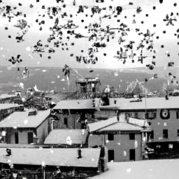 Un giorno, una piccola nevicata rumorosa si formò sulla terra. Fiocchi di neve chiassosi caddero sulle persone, sulle case e sulle strade. Tutto il mondo sembrava impazzito dalla neve.