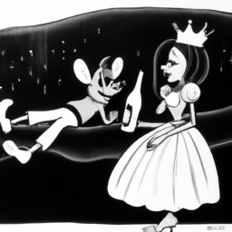 C'era una volta una principessa alcolizzata che viveva in un castello lontano. La principessa era molto triste perché non aveva nessuno con cui condividere i suoi sentimenti. Un giorno, mentre si aggirava per il castello, incontrò un topo strabico che la guardava con ammirazione. Il topo strabico si innamorò subito della principessa alcolizzata, ma non osava avvicinarsi a lei. Un giorno, il topo strabico decise di prendere coraggio e si avvicinò alla principessa. La principessa si stupì della sua audacia, ma era anche commossa dall'amore che il topo strabico provava per lei. La principessa decise quindi di smettere di bere e di dedicarsi alla cura del topo strabico. I due divennero inseparabili e la principessa imparò ad amare il topo strabico come se fosse una persona. Un giorno, il topo strabico si ammalò gravemente e la principessa si prese cura di lui con tutta la sua forza e amore. Alla fine, il topo strabico guarì e i due vissero felici e contenti per sempre.