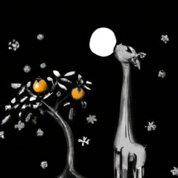 C'era una volta una giraffa che aveva un collo molto corto. Un giorno, mentre stava passeggiando nel bosco, vide un albero di arance magiche. La giraffa, incuriosita, decise di assaggiarne una. Quando la mise in bocca, si sentì come se fosse in una nuvola di felicità. Mentre la giraffa stava godendo dei suoi nuovi poteri, notò che il suo collo si stava allungando. Incredula, la giraffa si guardò intorno e vide che l'albero di arance magiche era la causa di tutto. La giraffa ringraziò l'albero per averle dato un collo più lungo e decise di raccontare a tutti quello che aveva scoperto. Da allora, le giraffe hanno un collo più lungo, e la magia dell'albero di arance magiche è rimasta nel cuore di tutti.