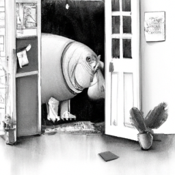 C'era una volta un ippopotamo di nome Peter che viveva in una casa molto grande. Peter era molto grasso e non riusciva a uscire dalla porta di casa. Un giorno, una fata gli apparve e gli disse: "Peter, devi perdere peso se vuoi uscire di casa". Peter era molto preoccupato, ma la fata gli diede una pozione magica e gli disse di berla ogni giorno. Dopo alcuni giorni, Peter si accorse che stava perdendo peso e poteva finalmente uscire di casa. Ma la fata gli disse che, se avesse smesso di prendere la pozione magica, avrebbe ripreso tutto il peso. Così Peter decise di seguire una dieta sana e di fare esercizio fisico tutti i giorni. Alla fine, Peter riuscì a mantenere un peso sano e uscì di casa ogni giorno per fare delle belle passeggiate. E, ogni volta che incontrava la fata, lei gli ricordava di mantenere la sua dieta e di fare esercizio fisico. Moralità: Se vuoi raggiungere un obiettivo, devi impegnarti e lavorare sodo.